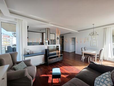 Bardzo ładne mieszkanie 2-poziomowe (mierzona po podłodze to około 90 m2.) z dużym balkonem, na kameralnym osiedlu ...