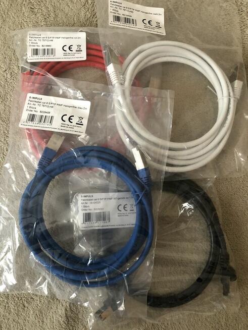 Sprzedam Patchcordy Cat6, Rj45, S/FTP PIMF, 2 metry, różne kolory (czerwony, niebieski ,biały, czarny). Cena za ...