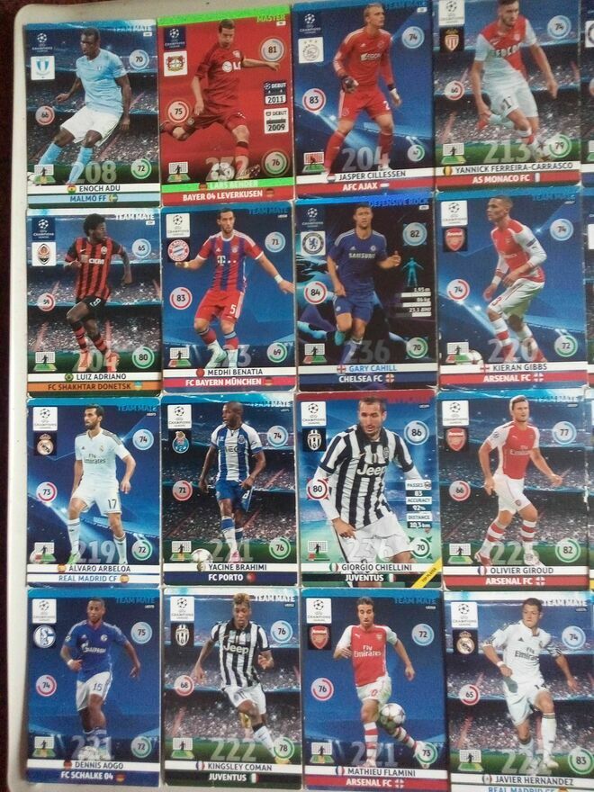 Duża kolekcja kart z piłkarzami, w miarę alfabetycznie ulożone na zdjęciach, zapraszam także do pozostalych moich ogłoszen w tym temacieCena za,sztukę, ale przy zakupie conajmniej 10 sztuk duuuuża zniżka!!!