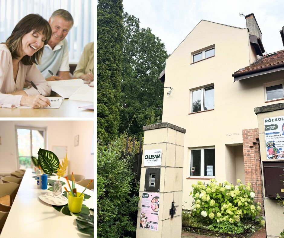 – pracę w kameralnym, twórczym środowisku z 8 salami, kuchnią projektową, salą plastyczną i ogrodem, na przeciwko lasu Kabackiego