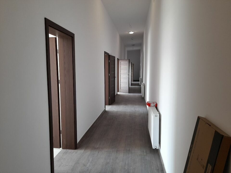 Wynajmę nowo zrobione biuro 270m2 okna nowe bardzo widne samodzielny modul oddzielne wejscie jedna powierzchnia dobry dojazd b okazyjna cena 50zł+media moduł ogrzewany, oddzielna klatka."5 pokoji oraz 3 łazienki ogrzewanie w cenie tylko prąd.wszystko jest, brakuje tylko wykładzin w pokojach.parking teren bardzo bezpieczny,ogrodzony na terenie meble dostępne natychmiast.